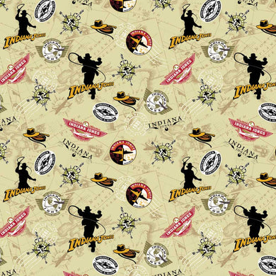 Indiana Jones Globe Trotter Cream Cotton Fabric