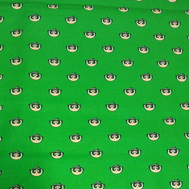 PowerPuff Girls - Buttercup Face Green Cotton Fabric