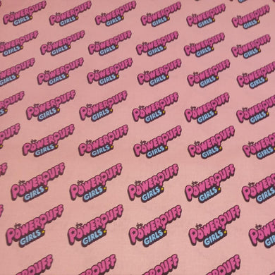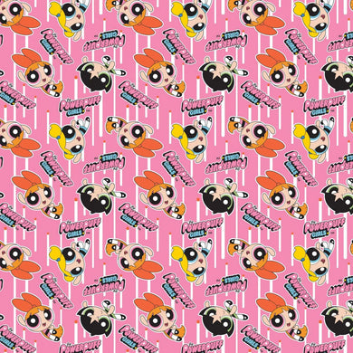 PowerPuff Girls - Logo Diagonal Pink Cotton Fabric