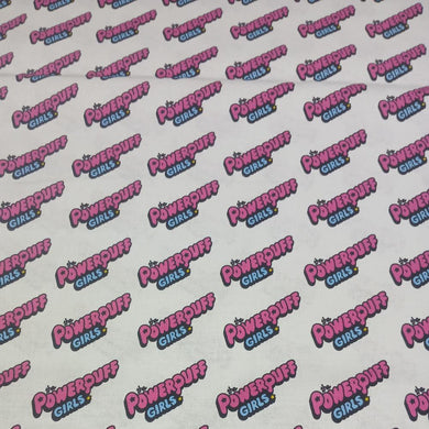 PowerPuff Girls - Logo Diagonal White Cotton Fabric