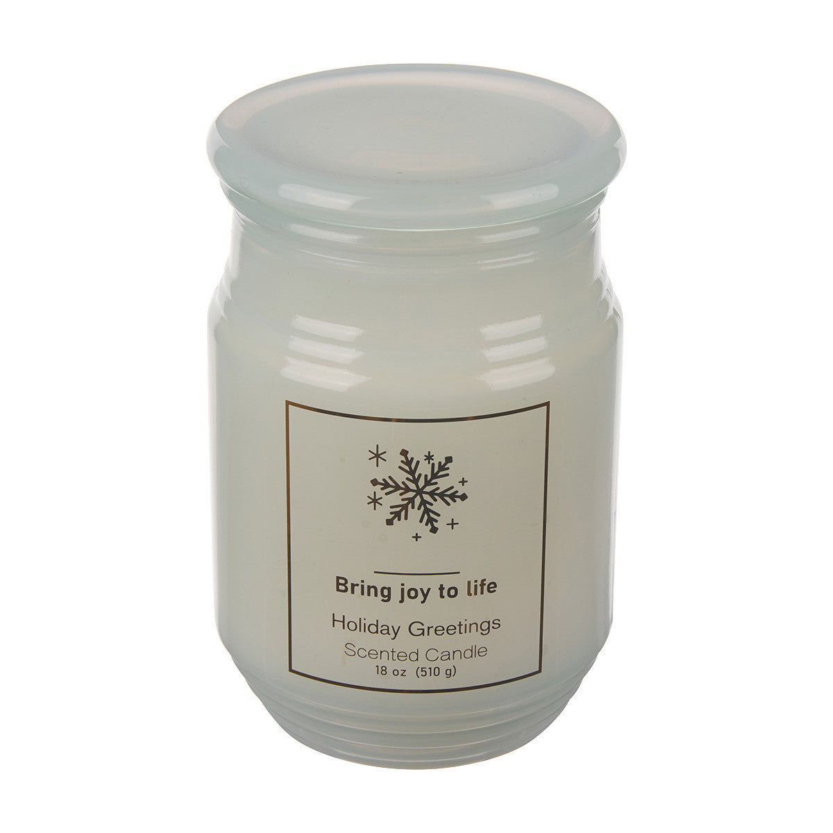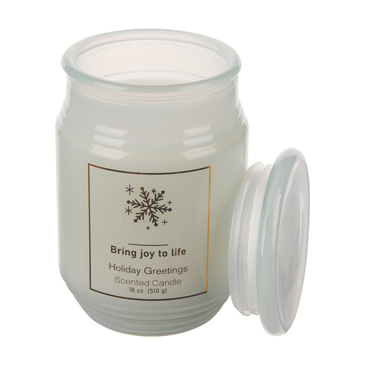 - Features a festive holiday fragrance blend in an elegant glass jar with lid