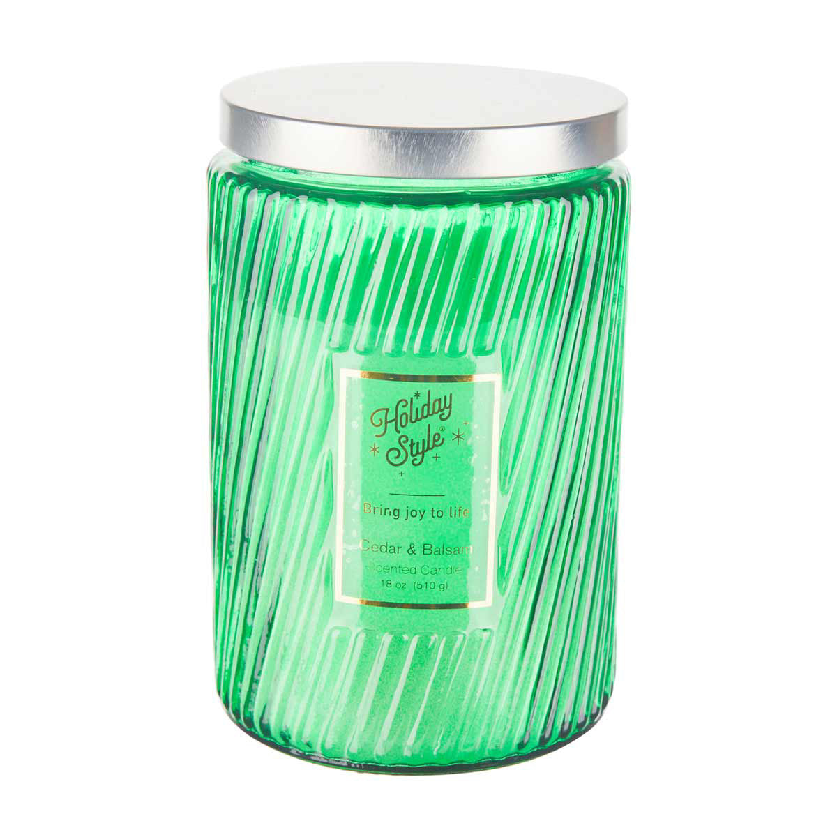 • 18 oz candle in a festive ribbed glass jar, available in green or red