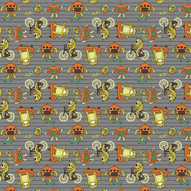 Have Fun Stay Safe " Gray" Cotton Fabric
