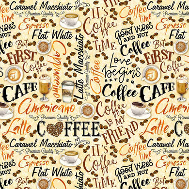 For The Love Of Coffee Fresh Brewed Words Cotton Fabric
