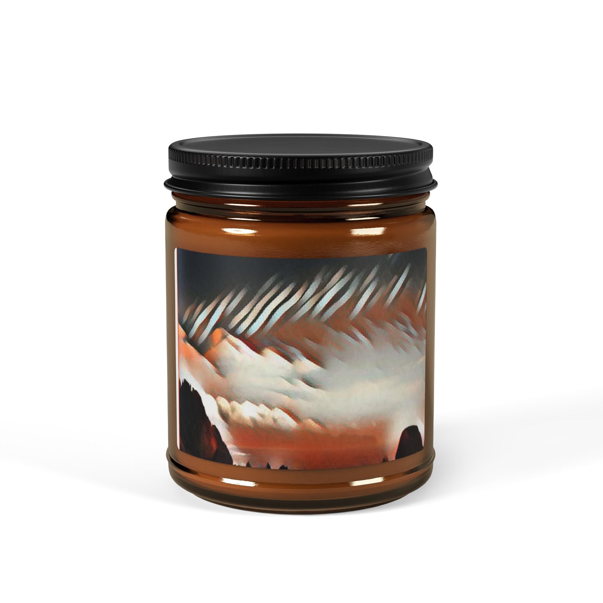 Aromatic Soy Candle - Cozy Amber Jar with Scenic Design