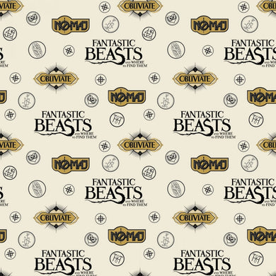 Saying and Symbols Fantastic Beast and Wizarding World Cream Flannel Fabric