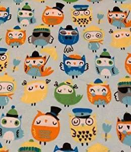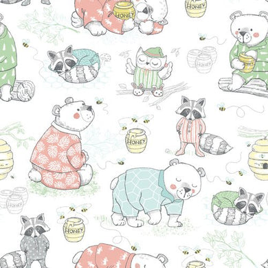 Sleepy Bears, Raccoons & Owls White Comfy Prints Flannel Fabric