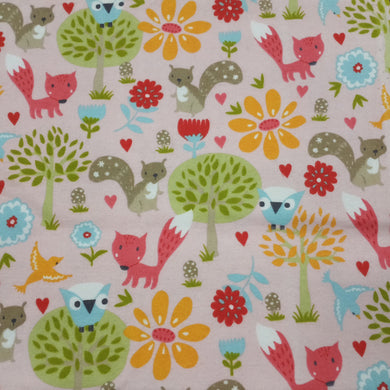 Baby Animals Woodland Pink Flannel Fabric