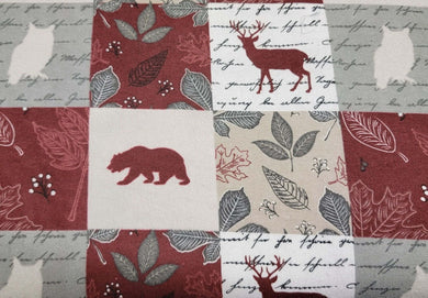 Wildlife Wood Patch Wine Flannel Fabric