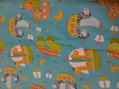 Baby Animals Sailboats Flannel Fabric