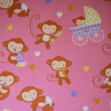 Baby Animals Monkeys Pink Flannel Fabric