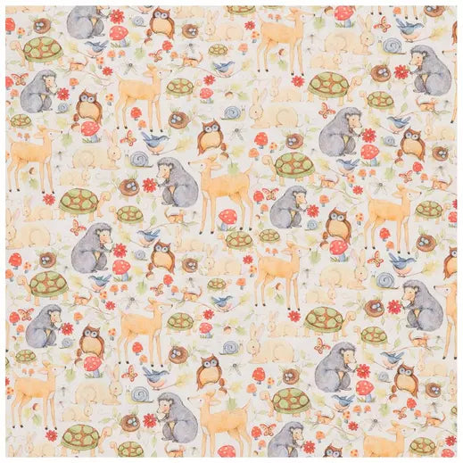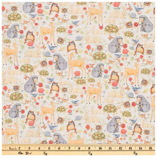 Woodland Cotton Calico Fabric will give your next sewing project a vintage look! This charming fabric has a beige background with a pattern of woodland critters and plants. You'll find mushrooms, deer, owls, snails, butterflies, and more! Measure and cut it to size for fun apparel and accessories that show off your love for nature.