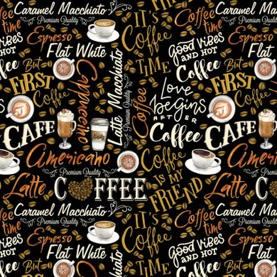 For The Love Of Coffee Fresh Brewed Words Cotton Fabric