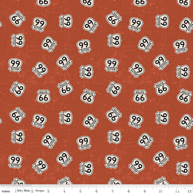 Route 66 Symbol Toss Sea Glass Cotton Fabric