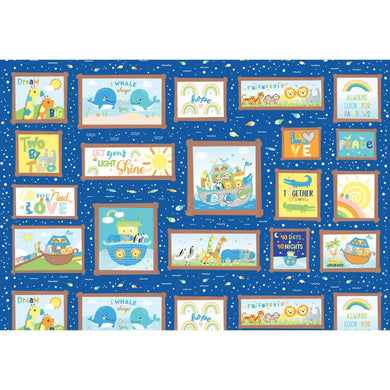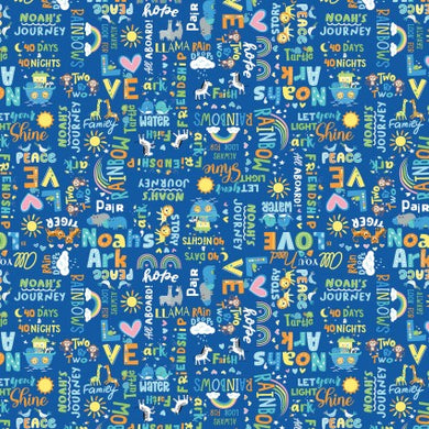 Noah's Journey Two by Two Words Blue Cotton Fabric