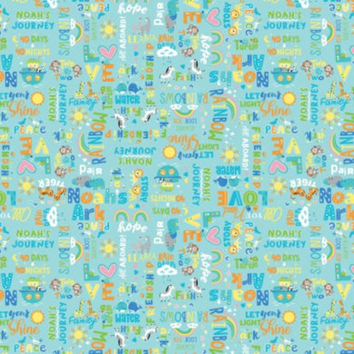 Noah's Journey Two by Two Words Aqua Cotton Fabric
