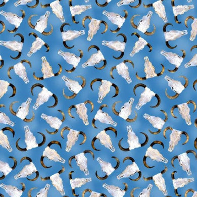 Big Sky Country Bull Skulls Blue Cotton Fabric