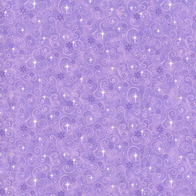 Glitter Swirls on Violet Cotton Fabric
