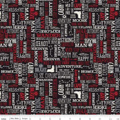 Wild at Heart Black Words Cotton Fabric