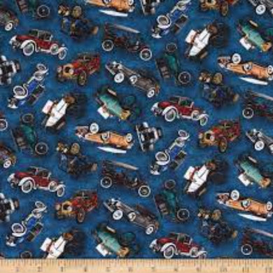 Kaufman On The Road Tossed Cars Indigo, Quilting Fabric