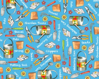 Handmade Placemat Or Table Runner Who Let the Hogs Out Gardening Tools Blue