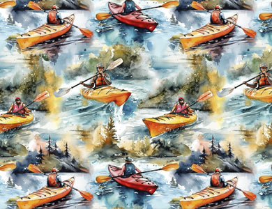 Handmade Placemat Or Table Runner Painterly Kayaks #3 Allover Print