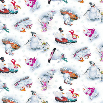 Handmade Placemat Or Table Runner Tossed Snowmen on Blue Christmas Glitter