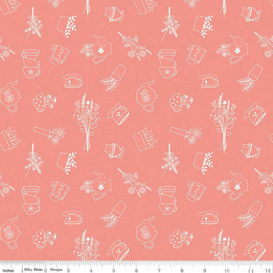 Handmade Placemat Or Table Runner Afternoon Tea Sketches Salmon