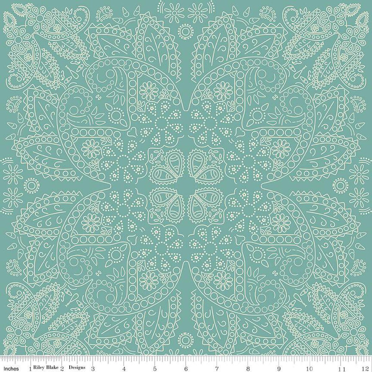 Handmade Valance or Curtain Panel Cowboys Bandana Teal