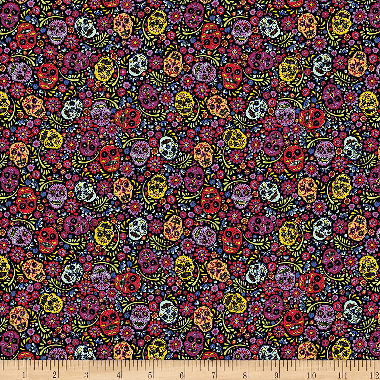 Handmade Valance or Curtain Panel Eternally Yours Sugar Skulls Black