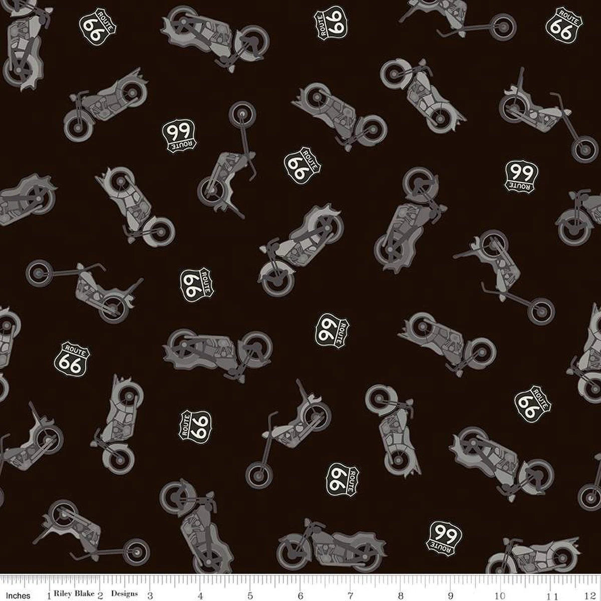 Handmade Valance or Curtain Panel Route 66 Bikes Black