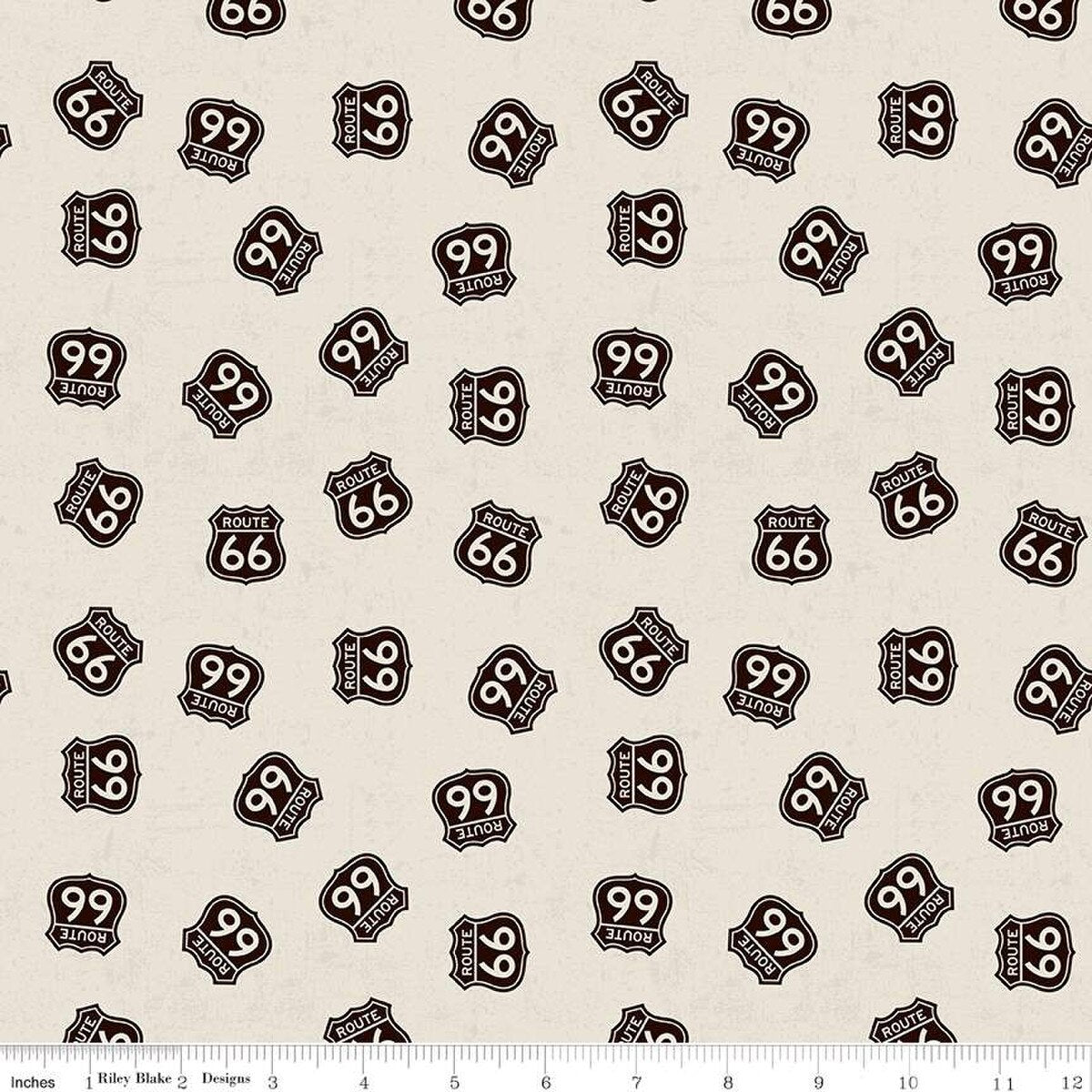 Handmade Valance or Curtain Panel Route 66 Signs Cream