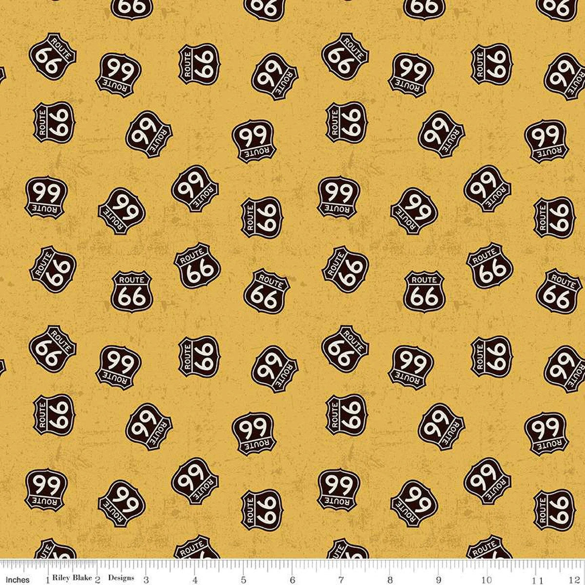 Handmade Valance or Curtain Panel Route 66 Signs Gold