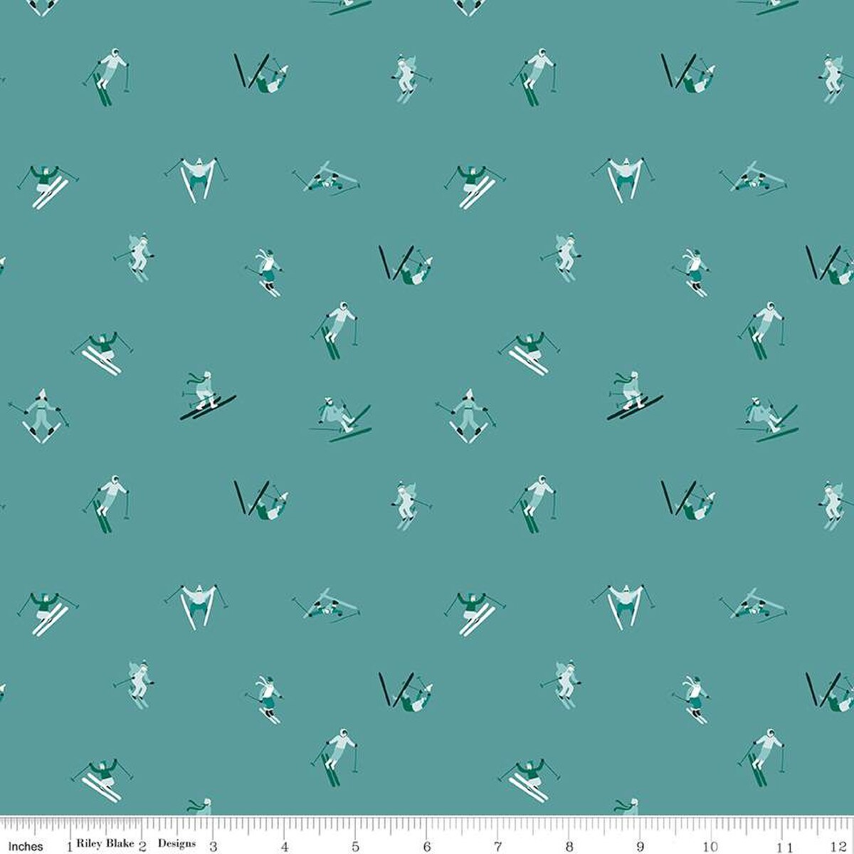 Handmade Valance or Curtain Panel Ski Hill Ski Tracks Aqua