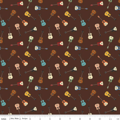 Handmade Valance or Curtain Panel Cowboys Guitars Brown