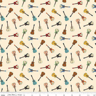 Handmade Valance or Curtain Panel Cowboys Guitars Cream