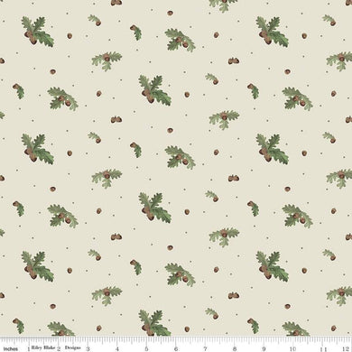 Handmade Valance or Curtain Panel Let's Get Lost in the Woods Acorns and Leaves Off White