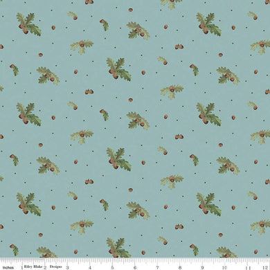 Handmade Valance or Curtain Panel Let's Get Lost in the Woods Acorns and Leaves Vintage Blue
