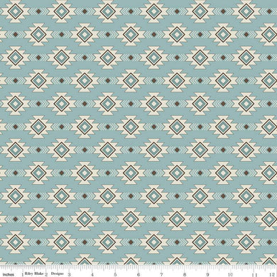 Handmade Valance or Curtain Panel Let's Get Lost in the Woods Geometric Vintage Blue