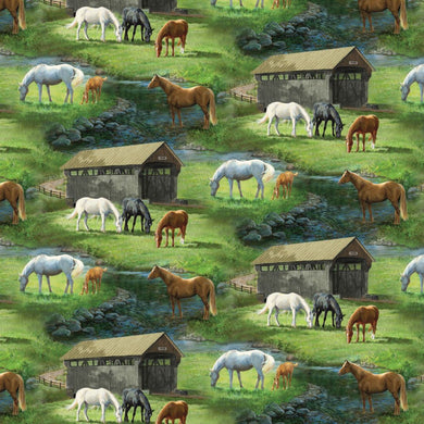 Handmade Valance or Curtain Panel Horse Sweetwater Bridge Scenic