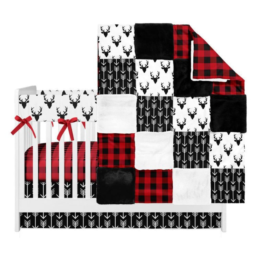 Ultra-luxurious high-quality baby linens: made of 100% cotton sateen which is super soft and rich color saturation, that won’t fade. 4 pcs crib bedding set includes: quilt blanket 44 x 37 inches, fitted crib sheet 52 x 28 x 8-inch deep pocket, crib skirt with 14-inch drop and rail cover 52 inches.