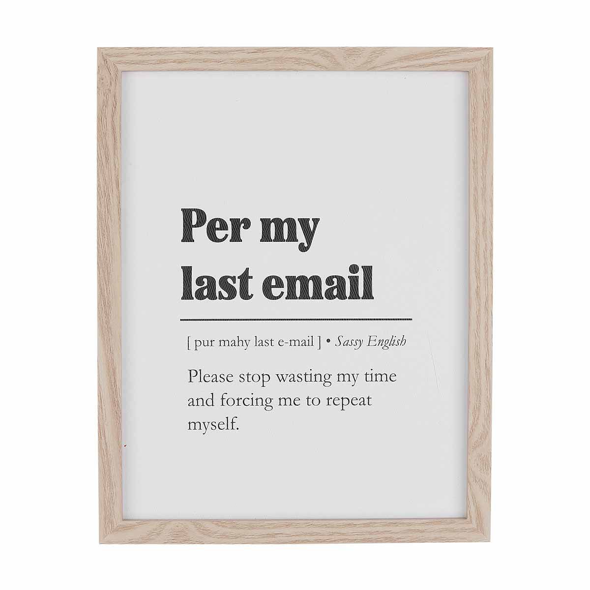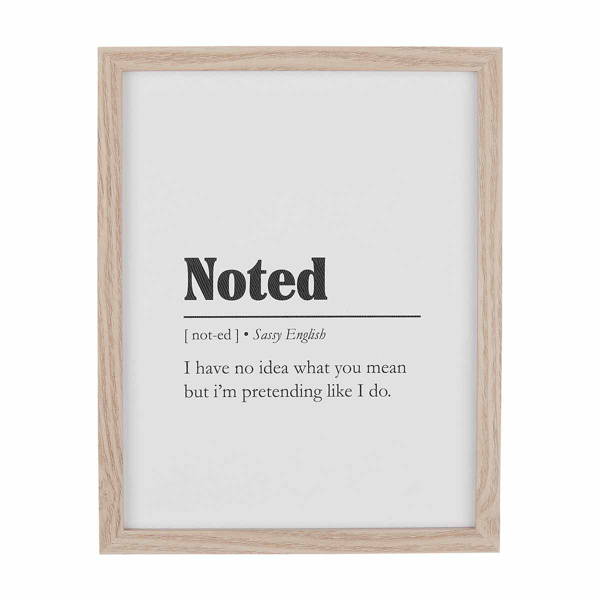 Add a fun element to your decorations using this Wooden Printed Wall Plaque. This simple yet elegant wall plaque features the sarcastic meanings of 'Noted,' and 'Per my last email' on a solid white background. It is storable, easy to place on the tabletop or hang on the wall, and simple to care for.